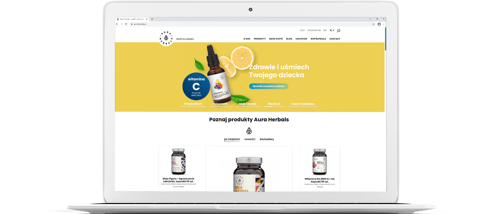 Wśród naszych zadań znalazł się także marketing efektywnościowy marki Aura Herbals. Nowy projekt znacznie wpłynął na organiczne wyniki strony w wyszukiwarce. Widoczność marki wspierają stałe działania SEO i kampanie wizerunkowe.