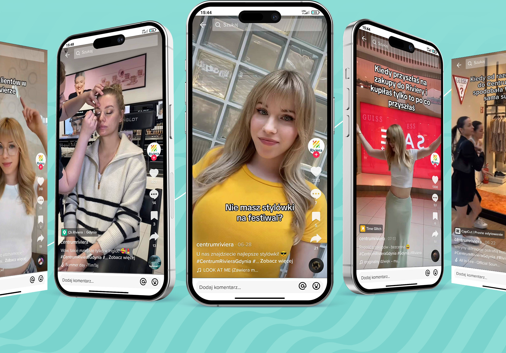 Riviera jest miejscem chętnie odwiedzanym przez osoby z pokolenia Z, do których najłatwiej jest dotrzeć poprzez TikToka. W przypadku tej platformy skupiamy się na humorystycznej komunikacji. Tworzymy zróżnicowane treści wpisujące się w aktualne trendy, nagrywamy vlogi zakupowe, pokazujemy propozycje outfitów i tworzymy zabawne filmiki o tematyce zakupowej.